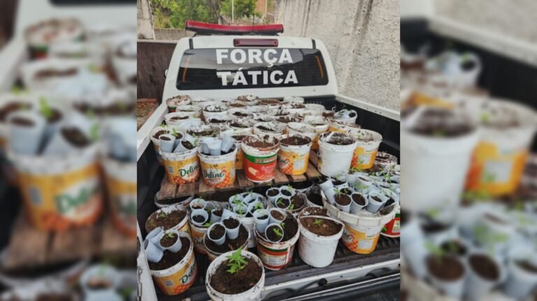 Ainda segundo a PM, na plantação havia diversas mudas de maconha em crescimento, distribuídas de forma organizada e apresentando sinais de manutenção recente.