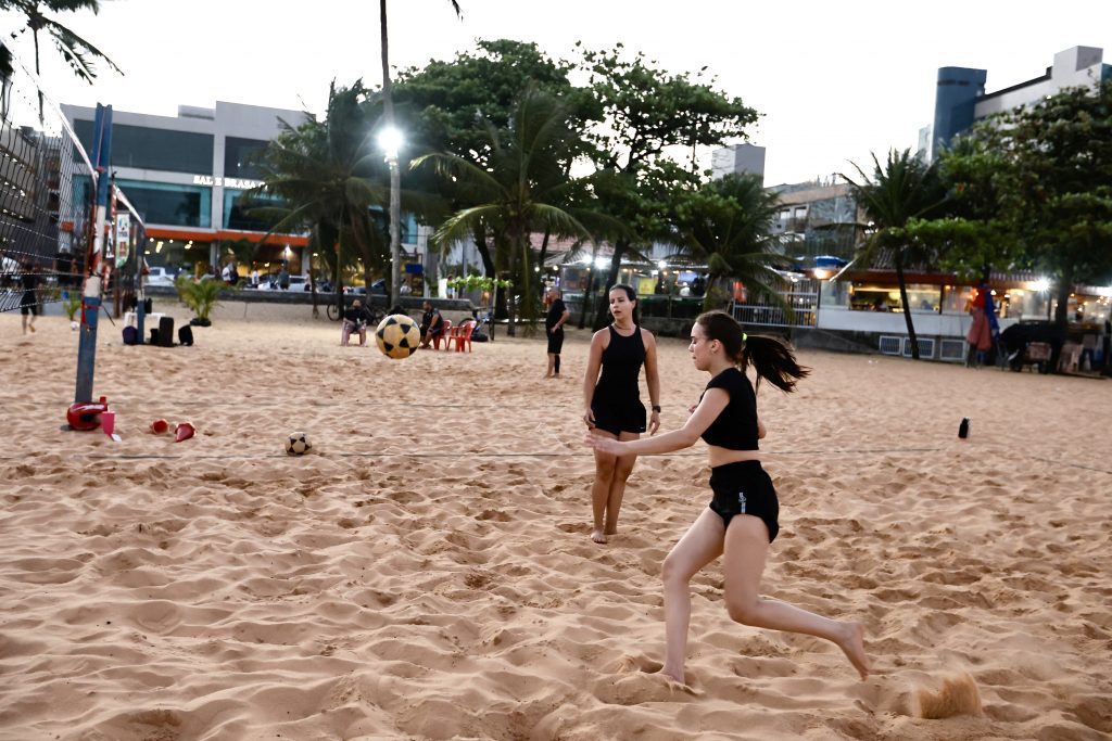 “A rotatividade é grande conforme a época do ano, a exemplo das condições climáticas. A procura gira em torno de 300 alunos por dia, porque tem aulas pela manhã e tarde e aulas coletivas, que acontecem tanto na areia da praia, quanto dentro da academia. Na areia, é funcional e as outras aulas, como step e dança são dentro da academia. Pela manhã, têm muitos idosos e, à tarde, jovens maduros, além de turistas que também frequentam durante sua estadia na cidade”, explica a professora de Educação Física, Valéria Montenegro.