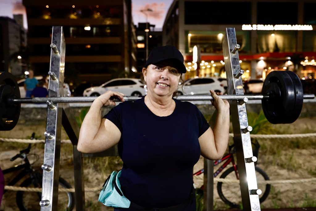 Claudia Cavalcanti frequenta a Academia ao Ar Livre há cerca de dois meses atendendo ao chamado de uma amiga. “Eu me animei a vir quando minha amiga insistiu para frequentarmos a academia. Eu faço aula de aeróbica e step. Minha resistência melhorou bastante porque eu estava muito sedentária. Eu faço atividades três vezes por semana, na segunda, quarta e sábado. Estou mais disposta e feliz”, relatou.