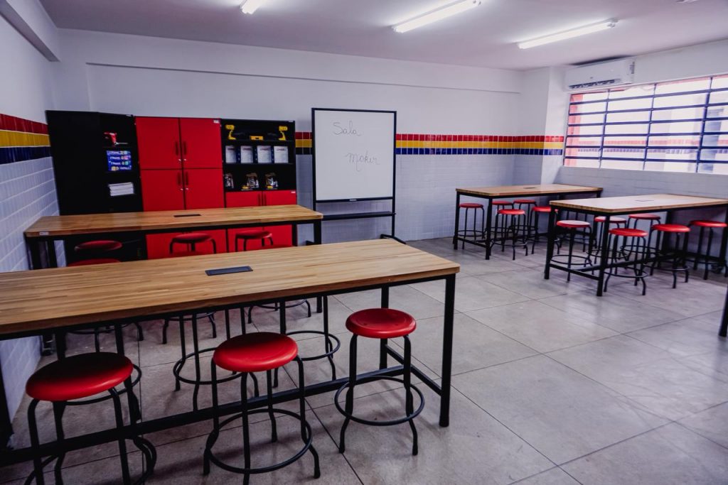 Mais melhorias – A obra também incluiu a construção de guarita, implantação de estacionamento externo com 26 vagas, além da execução de calçadas e de piso em granilite, proporcionando mais segurança, mobilidade e melhor circulação no ambiente escolar. O projeto ainda contemplou a implantação de central de gás, modernização da fachada e do acesso à edificação, bem como a recuperação e manutenção do reservatório.