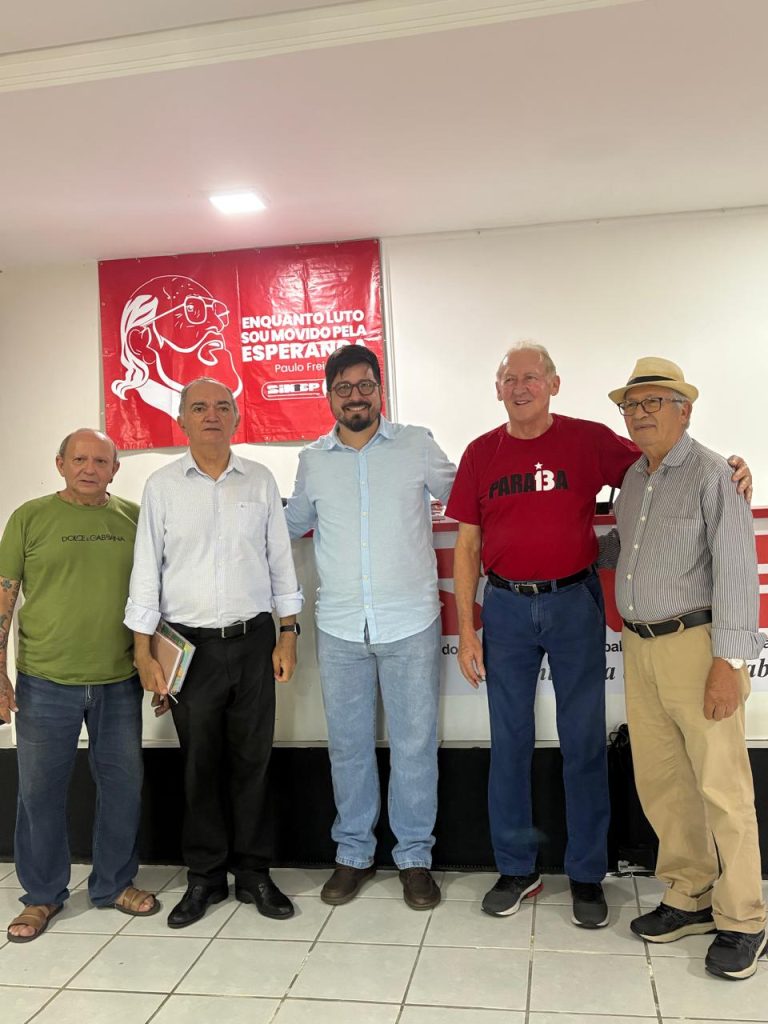 Dirigentes do sindicato e demais educadores/as também participaram do encontro. Entre eles, o coordenador-geral do SINTEP-PB, professor Felipe Baunilha que ressaltou a relevância da atividade. Segundo Felipe, a presença do secretário, ao lado de movimentos sociais e lideranças sindicais, reforça o papel do sindicato não apenas na defesa dos direitos da categoria, mas também na construção de uma sociedade mais justa e solidária, tendo a educação como base.